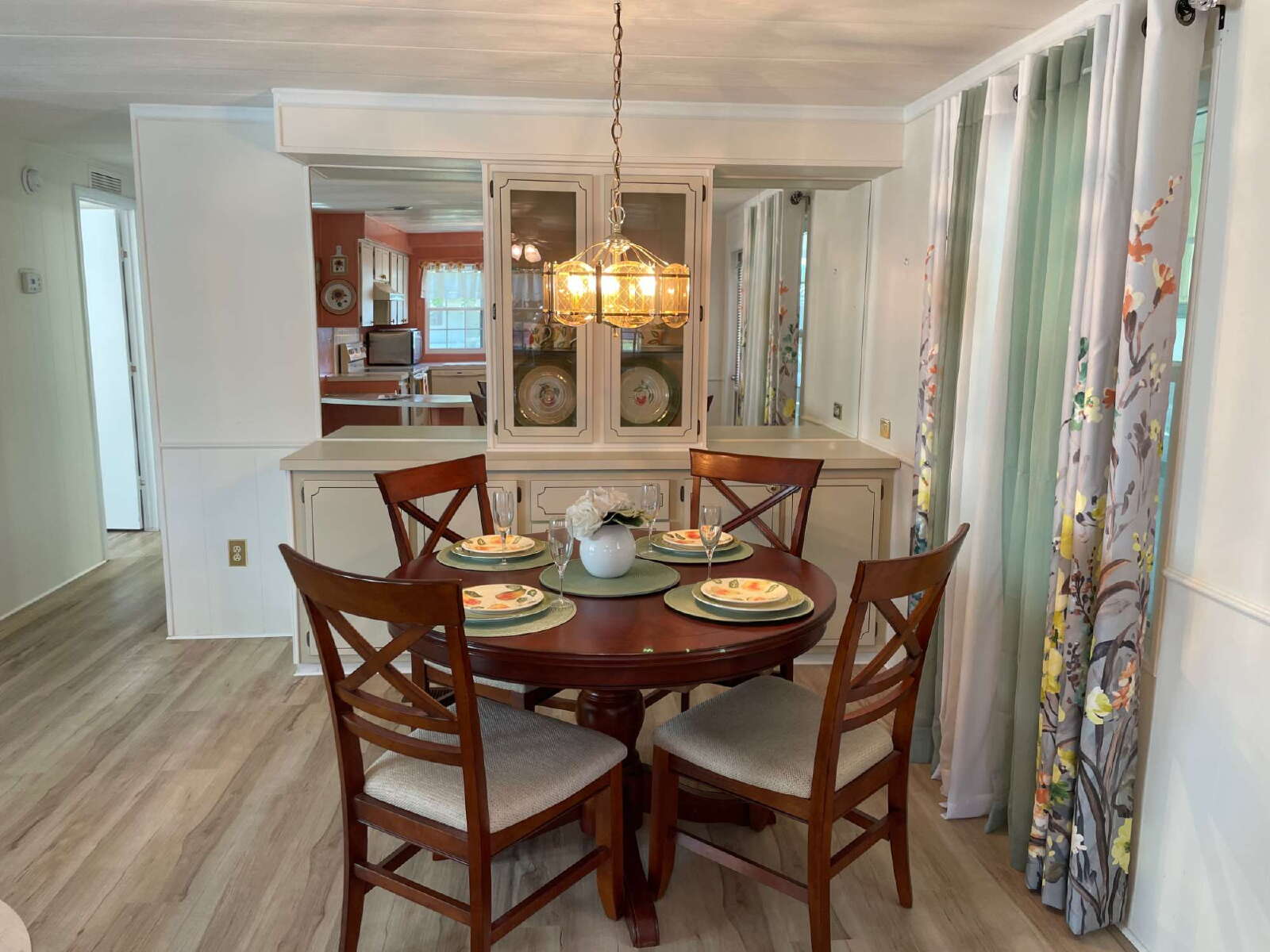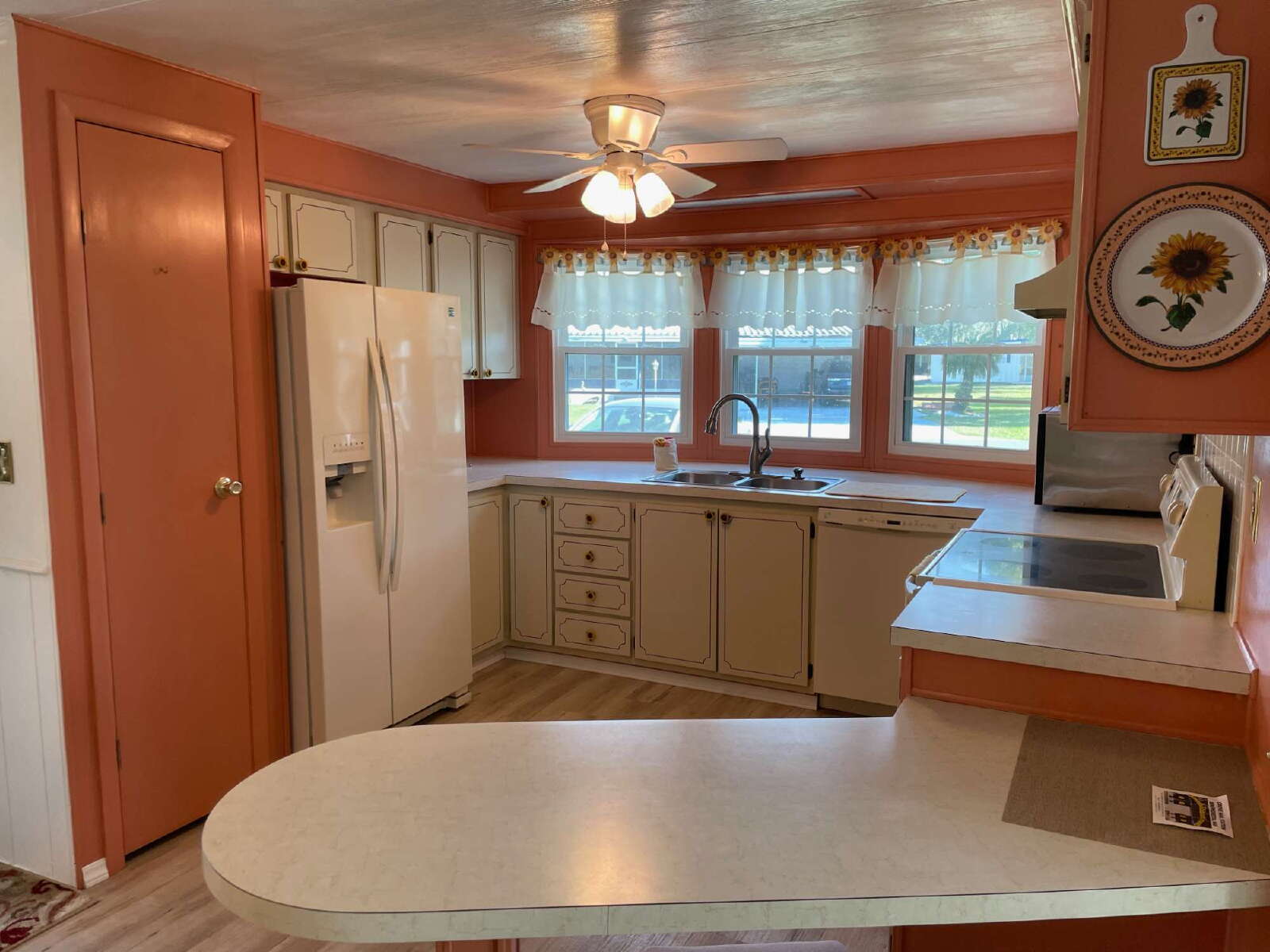 Step inside to a bright and airy open floor plan where laminate flooring flows seamlessly throughout the main living areas, setting a warm and welcoming tone. The living room opens directly to the enclosed lanai, creating the perfect space for morning coffee, afternoon reading, or evening gatherings with friends. Large windows and sliding doors allow natural light to fill the home, enhancing the comfortable, breezy feel of the space.